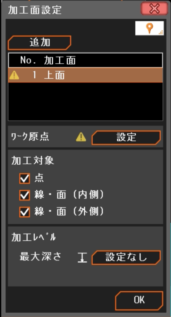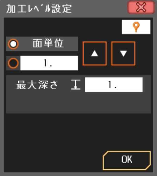 「設定なし」から面単位設定に変更し、最大深さを「1」に設定。